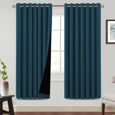 BellaHills 100% Blackout Curtains for Bedroom Thermal Insulated Heat and Full Light Blocking Eyelet Living Room with Black Liner 2 Panels, 90 x 72 Inch, Dark Teal