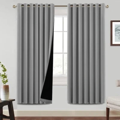 READY MADE: 2 panels per package. Each panel measures 90" wide x 72" long (total width is 180") , with 14 anti-rust grommets which fit curtain rods less than 1.6" diameter BLACKOUT EFFECT: With black liner on backing, curtains can definitely block out 100% bright sunlight and UV ray,bring you sound dreams and protect your furniture from color fading MULTIPLE FUNCTIONS: Made by advanced triple weave technology, high-density blackout fabric curtains can high performance on thermal insulated, room darkening, noise reducing and privacy protection UNIQUE HOME DECOR: These classic curtain panels will decorate your rooms with new great effect, suits for contemporary, traditional, vintage rustic, victorian home styles. No chemical coating, no formaldehyde, bring harmonious to your family MACHINE WASHABLE: Machine washable for easy care and maintenance, use only non-chlorine bleach when needed, tumble dry low and warm iron as needed