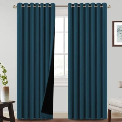 BellaHills 100% Blackout Curtains for Bedroom Thermal Insulated Heat and Full Light Blocking Eyelet Living Room with Black Liner 2 Panels, 90 x Inch, Dark Teal