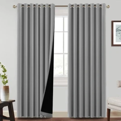 BellaHills 100% Blackout Curtains for Bedroom Thermal Insulated Heat and Full Light Blocking Eyelet Living Room with Black Liner 2 Panels, 90 x Inch, Dove Grey