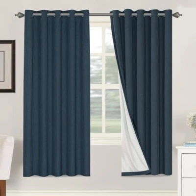 BellaHills 100% Blackout Curtains Linen Textured for Bedroom Full Light Blocking Thermal Insulated Curtain Panels Energy Saving with White Liner, 2 Panels, 66 x 72 Inch, Navy