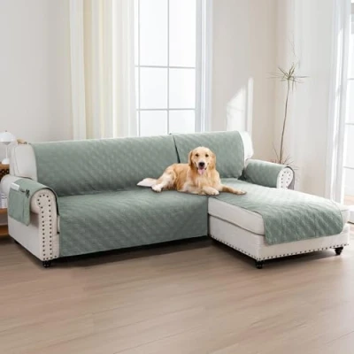 2-PIECES DESIGN: It consists of 2 pieces, namely chaise cover and the main slipcover. In addition, the unique design will fit for different types of L shape sofa. Suitable for L-Shape Sofa armrest width up to 20 in, sofa length up to 68 in, chaise width up to 30 in. See Measuring Guide in Photos 100% WATERPROOF: The fabric of the soft filling material adopts surface waterproof technology and 100% waterproof TPU composite technology on the back of the fabric. Stitching and splicing area also uses a fully waterproof widened edging strip. Therefore, the fabric can achieve 100% waterproof effect while retaining double-sided pattern STAY IN PLACE: Designs with elastic bands on the back part of the cover to prevent back movement by attaching the elastic bands to the sofa feet. Then, the extra arm piece on armrest cover part, tuck it inside in the gap between the seat cushion and armrest to help secure the armrests and the seat part of the sofa cover UNIQUE DECOR: The beautiful quilted texture with artistic geometry diamond pattern, lofty poly fill, and microfiber add gorgeous styles. Add more luxurious and stylish to your furniture, also save your cost renew your old furniture.It is not only the furniture cover, but the decorative home artist EASY CARE: Just toss the slipcover in the washing machine for effortless upkeep. Wrinkle free. Separately in cold water on the gentle cycle, do not use bleach. For drying, tumble dry low and remove them promptly from dryer. Shopping more sofa slipcovers / protectors in BellaHills brand to dress your furniture