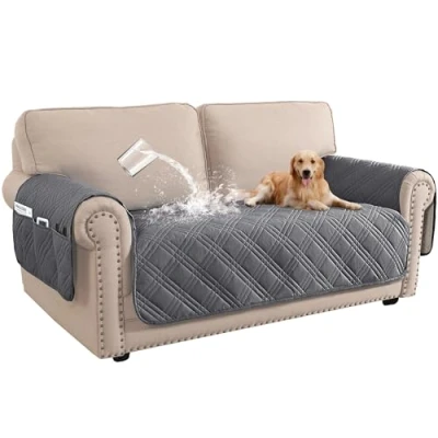 BellaHills 100% Waterproof Sofa Covers 2 Seater Slipcovers Couch Cover for Living Room Washable Seat with Side Pocket Pet Protector (2 Seater, Grey)