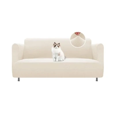 BellaHills High Stretch Sofa Cover 2 Seater 1 Piece Loveseat Covers Pets Friendly Slipcovers for Living Room Couch Washable Furniture Protectors (Loveseat, Natural)