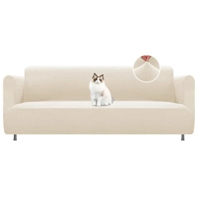 BellaHills High Stretch Sofa Cover 3 Seater 1 Piece Covers Pets Dogs Friendly Non Slip Slipcovers for Living Room Couch Washable Furniture Protectors (Oversize Sofa, Natural)