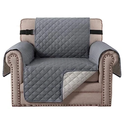 BellaHills Reversible Chair Covers Water Repellent Sofa Cover 1 Seater Slipcover from Pets for Cats Checked Pattern Thick Quilted with Elastic Strap (Chair, Grey/Beige)