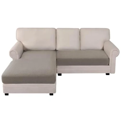 HIGH STRETCH: BellaHills' sofa cushion covers are made of 85% polyester and 15% spandex fabric with small checks jacquard pattern. Ultra high elasticity, super soft and wrinkle free, durable and long lasting, freshen up your interior decor PERFECT FIT: Our jacquard sofa cushion covers are stretchy to fit regular square seat cushions,T-cushions,chaise longue also sectional L-shaped sofa. Moreover, elastic cord sewn on bottom give the sofa/ furniture a whole protection. 3 size available: Chaise longue/ Chaise longue+2 Seater/ Chaise longue+3 Seater FUNCTIONAL: Seat Cushion is frequently seated by people or pet, which is easy to get dirty. Having a cushion cover not only protects your furniture from daily tear, spills, stains and so on, but also gives your sofa a new look EFFORTLESS INSTALLMENT: According to the installation guide, it can be finished within 2 minutes by one person. Find 4 angles and put them in the corresponding position, ensure the good fit EASY CARE: Machine washable in cold water. Wash separately at gentle cycle. Using mild laundry detergent. Do not bleach and iron