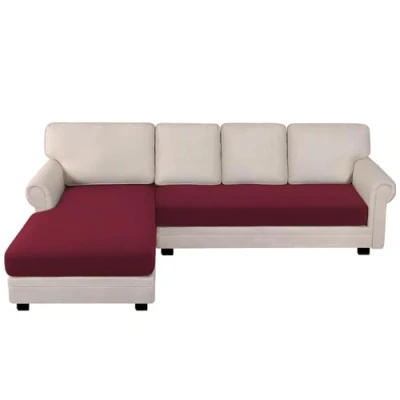 BellaHills Sectional Sofa Covers Seat Cushion L Shape Separate Couch Chaise Cover for (Chaise + 3 Seater, Burgundy Red)