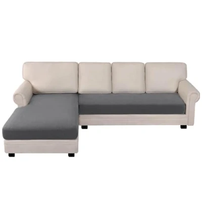 HIGH STRETCH: BellaHills' sofa cushion covers are made of 85% polyester and 15% spandex fabric with small checks jacquard pattern. Ultra high elasticity, super soft and wrinkle free, durable and long lasting, freshen up your interior decor PERFECT FIT: Our jacquard sofa cushion covers are stretchy to fit regular square seat cushions,T-cushions,chaise longue also sectional L-shaped sofa. Moreover, elastic cord sewn on bottom give the sofa/ furniture a whole protection. 3 size available: Chaise longue/ Chaise longue+2 Seater/ Chaise longue+3 Seater FUNCTIONAL: Seat Cushion is frequently seated by people or pet, which is easy to get dirty. Having a cushion cover not only protects your furniture from daily tear, spills, stains and so on, but also gives your sofa a new look EFFORTLESS INSTALLMENT: According to the installation guide, it can be finished within 2 minutes by one person. Find 4 angles and put them in the corresponding position, ensure the good fit EASY CARE: Machine washable in cold water. Wash separately at gentle cycle. Using mild laundry detergent. Do not bleach and iron