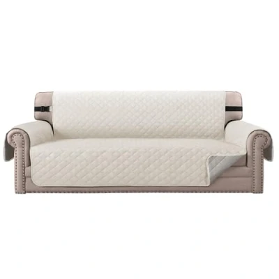 BellaHills Sofa Covers 4 Seater Water Resistant Slipcovers Furniture Protectors for Pets/Kids Soft Thick Quilted Couch Cover Secure with Non Slip Strap (Oversized Sofa, Ivory/Beige)