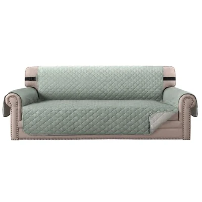 BellaHills Sofa Covers 4 Seater Water Resistant Slipcovers Furniture Protectors for Pets/Kids Soft Thick Quilted Couch Cover Secure with Non Slip Strap (Oversized Sofa, Lily Pad/Beige)