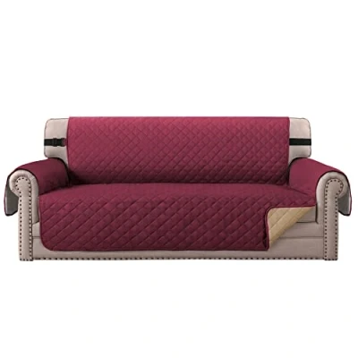 BellaHills Sofa Covers 4 Seater Water Resistant Slipcovers Furniture Protectors for Pets/Kids Soft Thick Quilted from Cats Secure with Non Slip Strap(Oversized Sofa, Burgundy/Tan)
