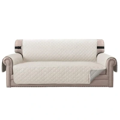 BellaHills Sofa Covers Water Resistant Cover 3 Seater Reversible Slipcovers Furniture Protectors Couch with Non Slip Elastic Straps for Kids Pets (Sofa, Ivory/Beige)