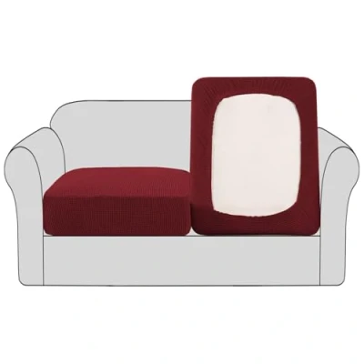 BellaHills Stretch Sofa Seat Cushion Cover Couch Furniture Protector Slipcover with Elastic Bottom Spandex Jacquard Fabric Small Checks(2 Pieces, Burgundy Red)