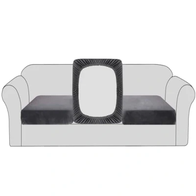 BellaHills Velvet Stretch Sofa Seat Cushion Covers Modular Couch Furniture Protector Cover with Elastic Bottom(3 Pieces, Grey)