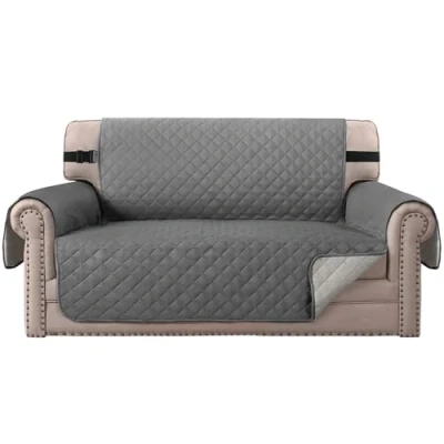 BellaHills Water Repellent Sofa Covers 2 Seater Protectors from Pets Cats Reversible Loveseat Couch Non Slip Furniture Slipcovers with Elastic Straps (Loveseat, Charcoal Grey/Beige)