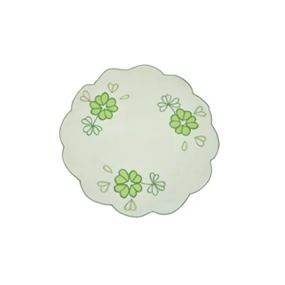 Modern Placemats – All Year Round that fit – Embroidered with green shamrock decoration. The background is Platzdeckchens Champagne. 100% Polyester – Washable – Easy to The round placemat has a linen texture. The size, 30 cm, is a Angegebenes approx. dimensions by the manufacturer.