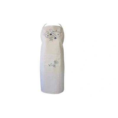 Traditional bib apron/Kitchen Apron in white, with blue kitchen print and a front pocket. Neck Lining – ties around the back. 100% Polyester – Washable – Easy to The bib apron has a linen texture. The size, 76x86 cm, is a Angegebenes approx. dimensions by the manufacturer.