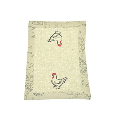 Modern place mat, decorated with chickens embroidery and print heart. The background is Placemats nature. 85% Polyester/15% linen, washable – Hoop capable The rectangular table cover has a linen texture. The size, 35 x 50 cm, is a Angegebenes approx. dimensions by the manufacturer.
