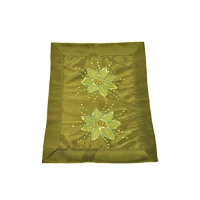 Playful table cover, decorated with embroidered flowers and sequins. The background is Placemats Olive Green. 100% Polyester – Washable – Easy to The rectangular table cover has a satin look. The size, 35 x 50 cm, is a Angegebenes approx. dimensions by the manufacturer.