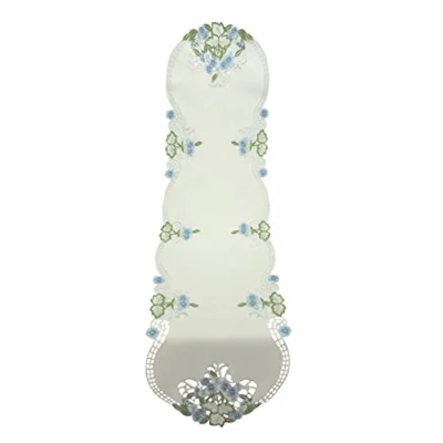 Spring table runner and equipped with many openings bring out the flowers and leaves The base colour of the table runner is Champagne 100% Polyester – Washable – Easy to The oval table runner has a satin look The size, 40x160 cm, is a from manufacturer Angegebenes Approximate Dimensions