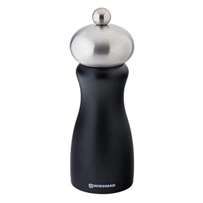Salt mill / grinder Material: Body - Black matte wood. Top - Brushed stainless steel Perfect for course or finely grinding salt or pepper Wipe clean only