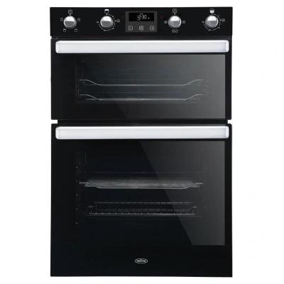 The Belling BEL BI902FP Double Electric Built-In Oven (Black, A Rated) features a spacious 72L fanned main oven and 38L top oven with multifunction cooking, catalytic liners for easy cleaning, programmable touch controls, and double glazed doors—delivering versatile, efficient performance in a modern, built-in design.