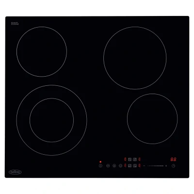 JoybuyThe Belling CH602T BLK 60cm Black Glass Ceramic Hob features four versatile cooking zones, intuitive touch controls with 9 power levels, a dual-size cook zone, safety functions including child lock and residual heat indicators, and a sleek, easy-to-clean black ceramic glass surface—perfect for modern kitchens.