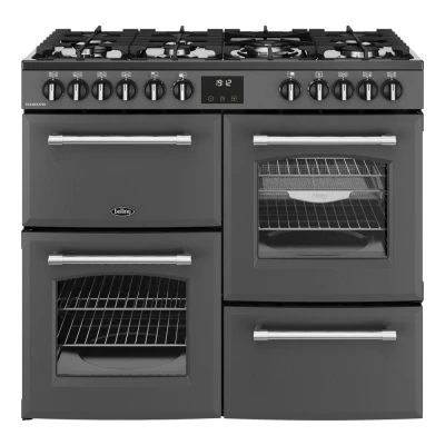 BELLING Farmhouse 100DF Dual Fuel Range Cooker Anthracite & Chrome, Silver/Grey