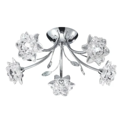 Bellis 5 Light Semi Flush Multi Arm Flower Design Ceiling Chrome and Glass, G9