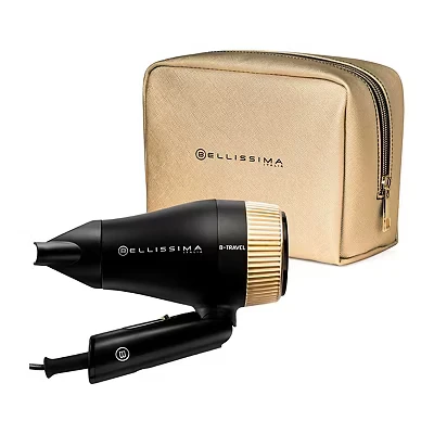 Bellissima B Travel Hair Dryer with Folding Handle, 1400W Dual Voltage, Worldwide, Lightweight, Compact, 2 Heat Settings, Case Included