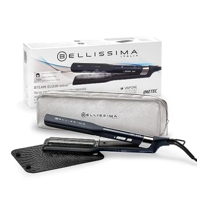 Bellissima Imetec Steam Elixir Deluxe, Professional Straightener, Smooth Hair in One Plow, Advanced Technology, Ceramic & Argan Oil, 4 Temperature, Heat Resistant Mat