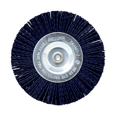 Industrial circular nylon brush. High flexibility nylon filaments prevent breakage, with abrasive silicon carbide grain. Fine grain. With 6mm spigot for fixing in drill Maximum RPM: 4,500, Manufacturer: Bellota