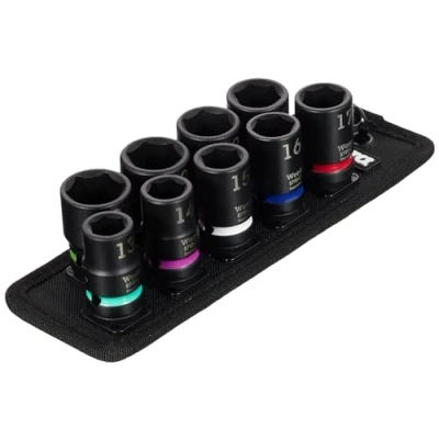 9-piece socket set on robust textile belt1/2" Smooth Twist to Unlock mechanism for a secure fit and simple removal of the sockets Particularly suitable for use with customary impact drivers With Take it easy tool finder: colour coding by size Suitable for attachment to a wall, shelf, tool trolley and to the Wera 2go System, Weight: 2.1384839414 Pounds, Manufacturer: Wera Werkzeuge GmbH