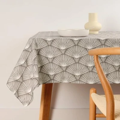 BELUM 140x140 Stain Resistant Cotton Tablecloth, Waterproof, Repellent, Geometric Pattern, Brown