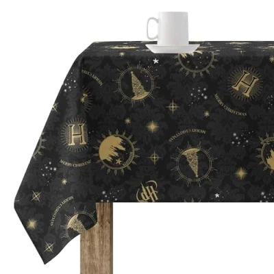 BELUM | Christmas Tablecloth 250 x 140 cm 100% Resin Cotton Stain Resistant (Non-Plastic-Coated) Hogwarts Christmas Black