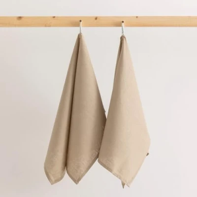 Belum | Pack of 2 Kitchen Towels Machine Washable 100% Linen | Pack of 2 Kitchen Towels 45 x 70 cm 100% Linen | Pack of 2 Reusable Kitchen Towels (Taupe)