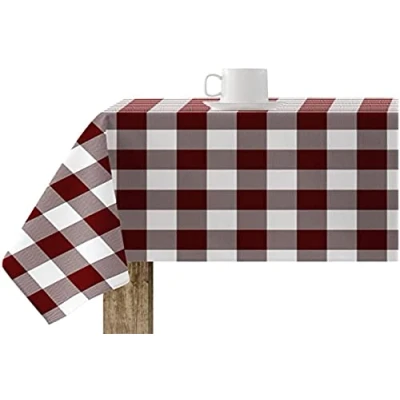BELUM,Resinated Tablecloth Stain Resistant Paintings Garnet, Vichy Squares Size; 100x140 cm, Fabric 100% Organic Cotton