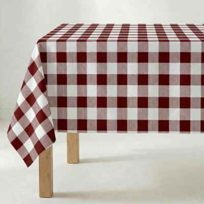 BELUM,Resinated Tablecloth Stain Resistant Paintings Garnet, Tablecloth Vichy Squares size; 250x140 cm, Tablecloth Vichy Garnet, Tablecloth Fabric 100% organic cotton