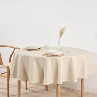 BELUM Round Tablecloth Diameter 100 Resinated Stain Resistant Levante 101, Cotton Fabric