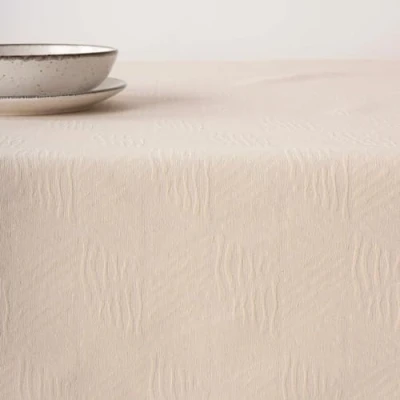 BELUM Stain Resistant Jacquard Tablecloth Size 155 x cm Extra Soft Touch Ecru Fabric 70% Cotton 30% Polyester Model 31990C
