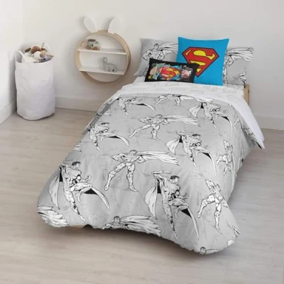BELUM | Superman Duvet Cover | Superman Grey Duvet Cover | Duvet Cover with Buttons | Duvet Cover 100% Cotton | Duvet Cover (Bed of 180 (260x240 cm))
