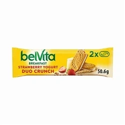 PACK OF 18: Indulge in a pack of 18 deliciously sweet and nutritious breakfast biscuits made with creamy yogurt and strawberry flavours BENEFITS: Packed full of wholegrain, saturated fibre, calcium, magnesium and vitamin e for a balanced diet FEATURES: Crunchy biscuits that are vegetarian-friendly and provide essential nutrients for a healthy start to the day TASTE: Enjoy the satisfying crunch paired with the smooth creaminess of yogurt in every bite NUTRITION: Provides an excellent source of key vitamins and minerals while offering a tasty breakfast option to kickstart your morning routine Belvita Breakfast Duo Crunch Strawberry and Live Yogurt biscuits are made with 5 of the finest wholegrains and cereal with a fruity strawberry centre surrounded by a creamy live yogurt filling These wholegrains are baked together through our gentle baking process, these selected and nutritious grains are transformed to become tasty breakfast biscuits Belvita Breakfast biscuits are a source of vitamin E and B1, magnesium and iron This pack contains 18 wrapped packs of 2 biscuits Enjoy them as part of a varied and balanced diet and healthy lifestyle, they have no colours or preservatives