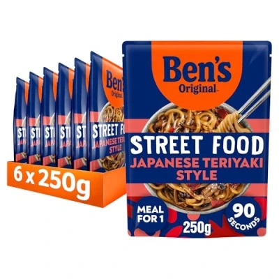 Ben's Original Street Food Japanese Teriyaki Sauce Ready in 90 seconds Noodles Meal serves 1 multipack 6x 250g