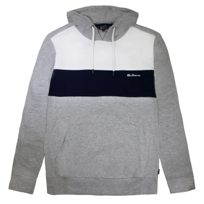 Ben Sherman Striped Panelled Hoody Mens Pullover Jumper 0065215G Grey