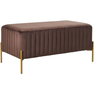 Living Room Bench with Metal Legs. Add a touch of modern luxury to your home with this striking rectangular bench. Featuring a rich, plush velvet upholstery beautifully highlighted by vertical tufting, it creates a glamorous visual effect in any room. Supported by iron legs, the piece is sturdy and practical, serving perfectly in either hallway or at the foot of a bed. Details: Product Type: Bed Bench General Color: Brown, Gold Frame Colour: Gold Shade: Dark Brown Material Type: Fabric Main Material: Velvet Additional Material: Iron Legs material: Metal Seat Material: Velvet Material Composition: 100% Polyester Shape: Rectangular Leg Caps/ Pads: Yes Storage: No Dimensions: Depth: 47 cm Seat Thickness: 28 cm Width: 91 cm Height: 43 cm Seating Surface: 91x47 cm Weight: 9 kg Weight Capacity: 120 kg Offer Includes: 1 x Bench Key Features: Firm and Comfortable Seating, Elegant Design, High-Quality Materials, Silky-Smooth, Velvety Fabric, Multifunctional, Leg Caps for Surface Protection