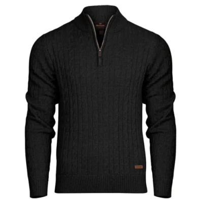Bench Mens Designer 1/4 Zip Cable Knit Jumper Quarter Pullover Cotton Blend Warm Winter Sweater. Quality Knitted Knitwear Black XL