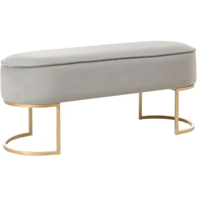 Accent Bed Bench in Glam Style. An elegant upholstered bench that adds a touch of glamour to any space with its velvet fabric in classic colour. Its curved, oval shape provides a sense of sophistication and comfort, making it a versatile addition to both the living room and hallway. The bench's metal accent legs, finished in gold, provide stability and bring in a luxe touch. Whether used at the foot of a bed or as a chic seating option in your living area, this bench exudes timeless charm. Details: Product Type: Bed Bench Style: Glam General Color: Grey, Gold Shade: Light Grey Material Type: Fabric Main Material: Velvet Additional Material: MDF Filling Material: Foam Material Composition: 100% Polyester Shape: Oval Pattern: Solid Seat Foam Density: 30 kg/m3 Storage: No Dimensions: Depth: 40 cm Width: 104 cm Height: 40 cm Seating Surface: 104x40 cm Weight: 8 kg Weight Capacity: 150 kg Offer Includes: 1 x Bench Key Features: Very Comfortable, Perfect for Both a Bedroom and a Living