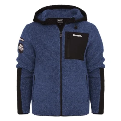 Bench Original Mens Full Zip Soft Fleece Thru Borg Sherpa Jacket Sweatshirt Hood Jumper Pockets Padded Warm Teddy Windproof Hooded Outdoor Coat Fully Lined Blue Marl M