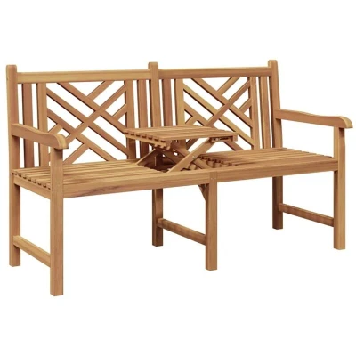 ManoManoGeneral description This rustic outdoor bench combines natural beauty with a sturdy design. Its smooth texture and elegant appearance make it perfect for anyone looking to enhance their outdoor seating. Ideal for balconies, this bench features diagonal patterns and earthy colors, creating a cozy vibe for peaceful moments or lively conversations. Technical specifications Material: Solid teak wood Colour: Brown Overall dimensions: 150 x 60 x 90 cm (W x L x H) Weight: 24.4 kg Indoor / outdoor: Outdoor only Assembly required: Yes EAN: 8721158938671 SKU: 42001968 Usage This bench is designed to withstand various weather conditions thanks to its durable materials. It is suitable for casual hangouts or quiet moments alone, providing a relaxing and reflective experience. Other information